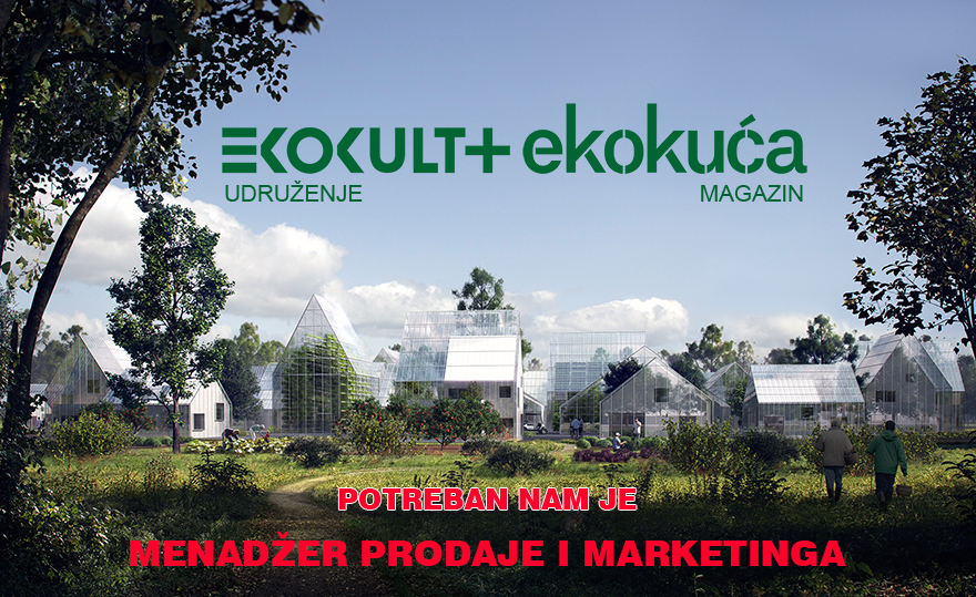Udruženju EKOKULT+ i Magazinu za eko arhitekturu i kulturu EKO KUĆA potreban je MENADŽER MARKETINGA I PRODAJE. Ukoliko imate iskustva ili ste obrazovani za rad u marketingu, prodaji, organizaciji dogadjaja i PR-u, radu na društvenim mrežama i želite da se odmah uključite u organizaciju Četvrtog medjunarodnog kongresa ODRŽIVA ARHITEKTURA – ENERGETSKA EFIKASNOST sa pratećim programima i izradi specijalnog izdanja Magazina za eko arhitekturu i kulturu EKO KUĆA i pratećih portala www.ekokucamagazin.com i www.congress-saee.com prijavite se na konkurs i pošaljite nam svoj CV što pre.
