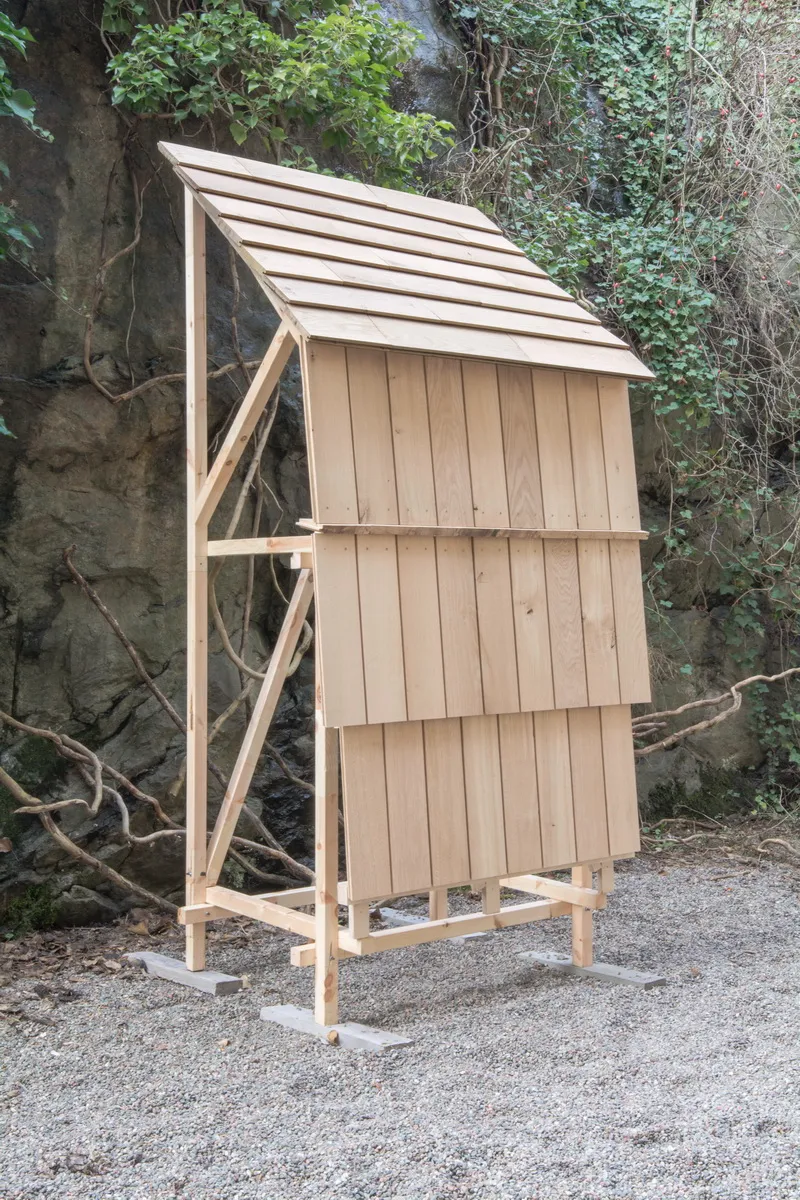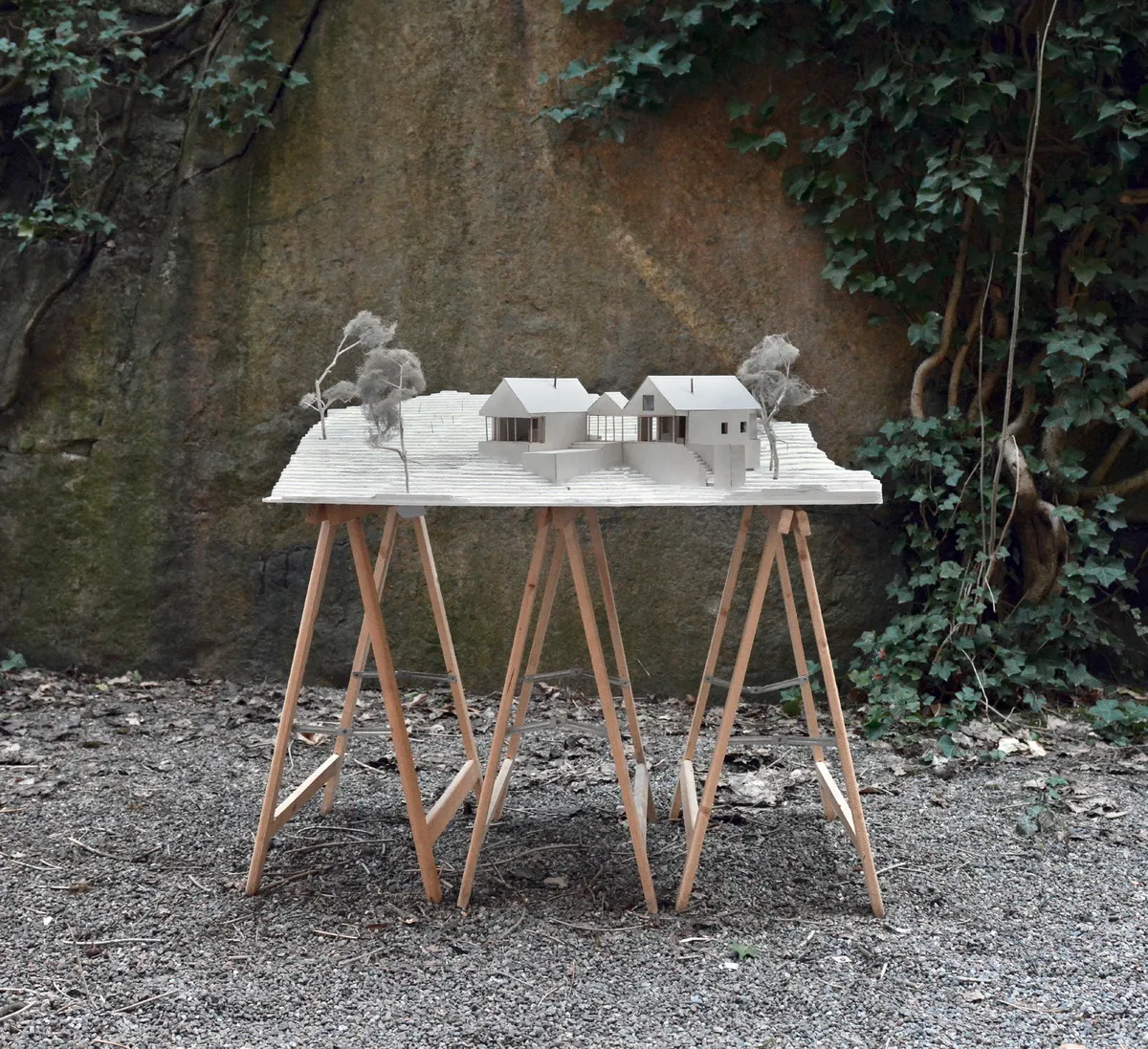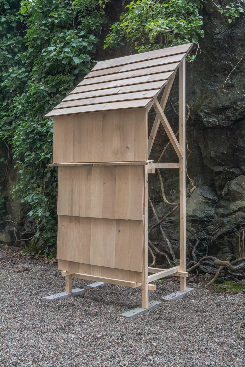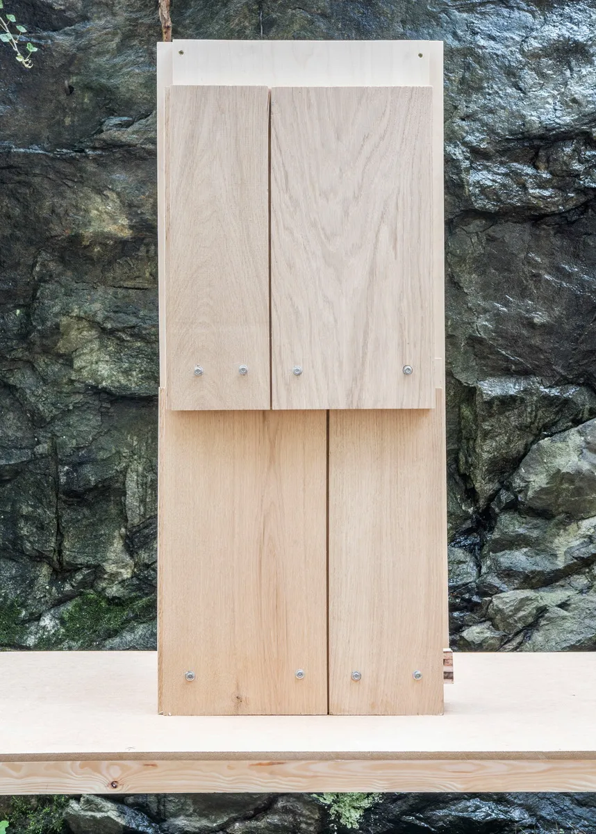 SPOLJNA HRASTOVA OBLOGA VREMENOM ĆE POSTATI SREBRNO-SIVA I STOPIĆE SE SA PEJZAŽEM OD ŠKRILJCA I GRANITA, ŠTO OTVORENO ASOCIRA NA PROLAZNOST I STARENJE. KUĆA TAKO DOBIJA ATRIBUTE ŽIVOG ORGANIZMA ČIJI VIZUELNI SPEKTAR NAVODI NA PREISPITIVANJE IDEJE O KONAČNOSTI I STALNOSTI NASPRAM PROMENLJIVOSTI.