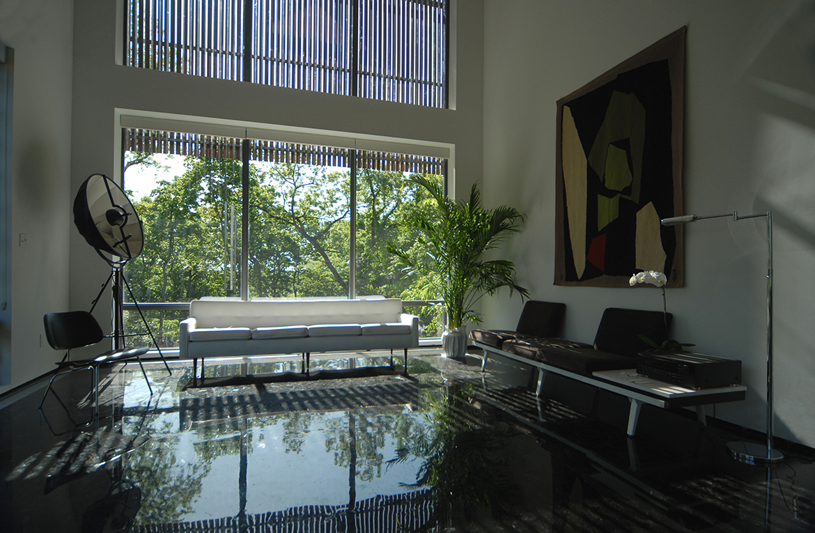 Epoksidni podni premaz obezbedjuje unutrašnju toplotnu masu za pasivno grejanje i hladjenje i smanjuje dnevne temperaturne oscilacije. Prisustvo ovog sjajnog podnog materijala i njegova sofisticirana, elegantna crna boja daju salonu i kuhinji jedinstven izgled, darujući prostornost i dubinu celom enterijeru.