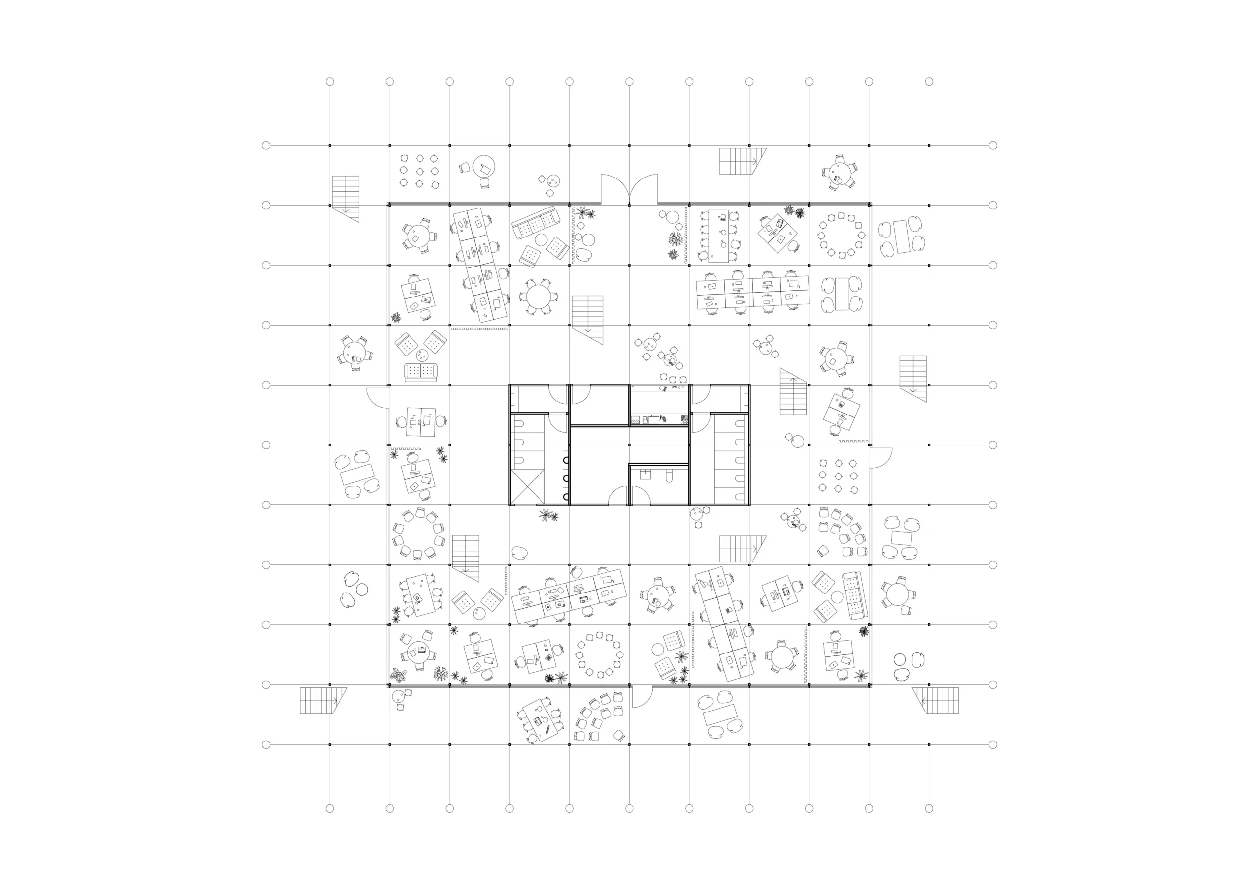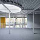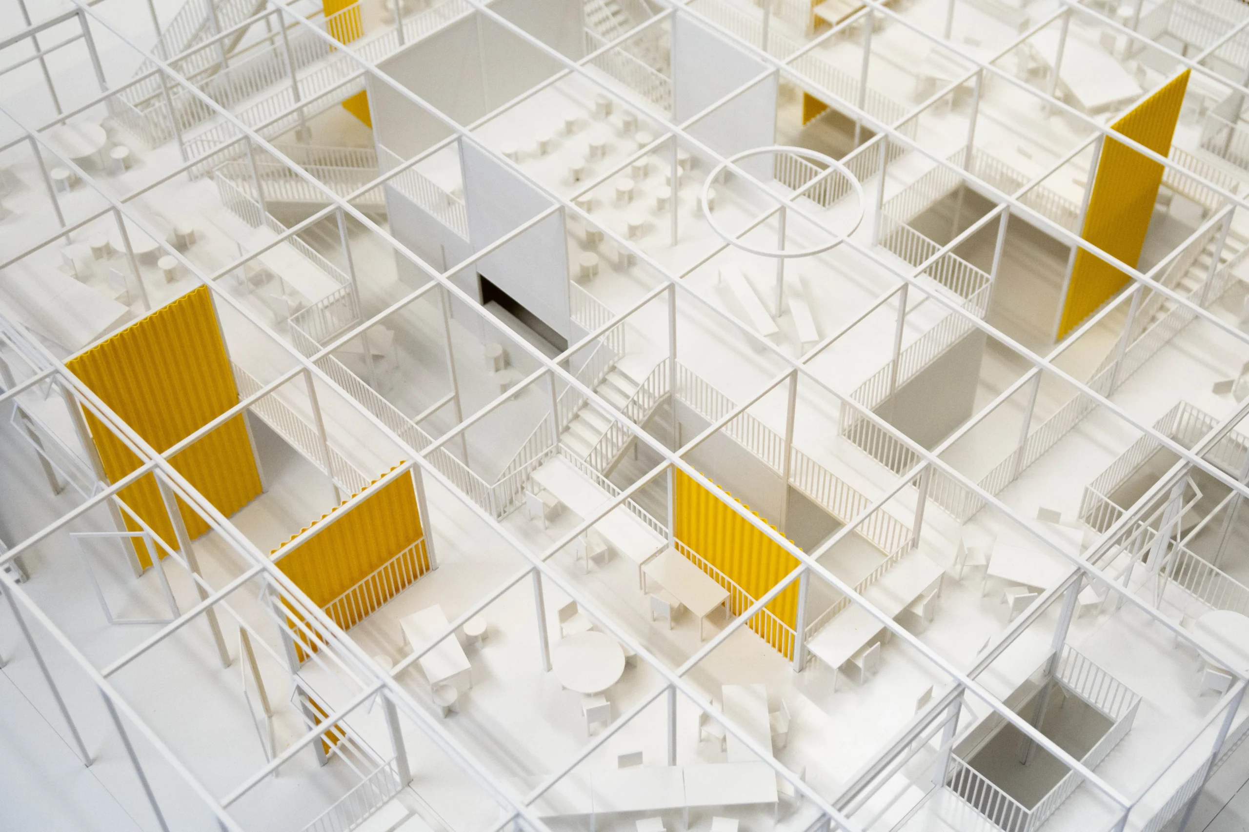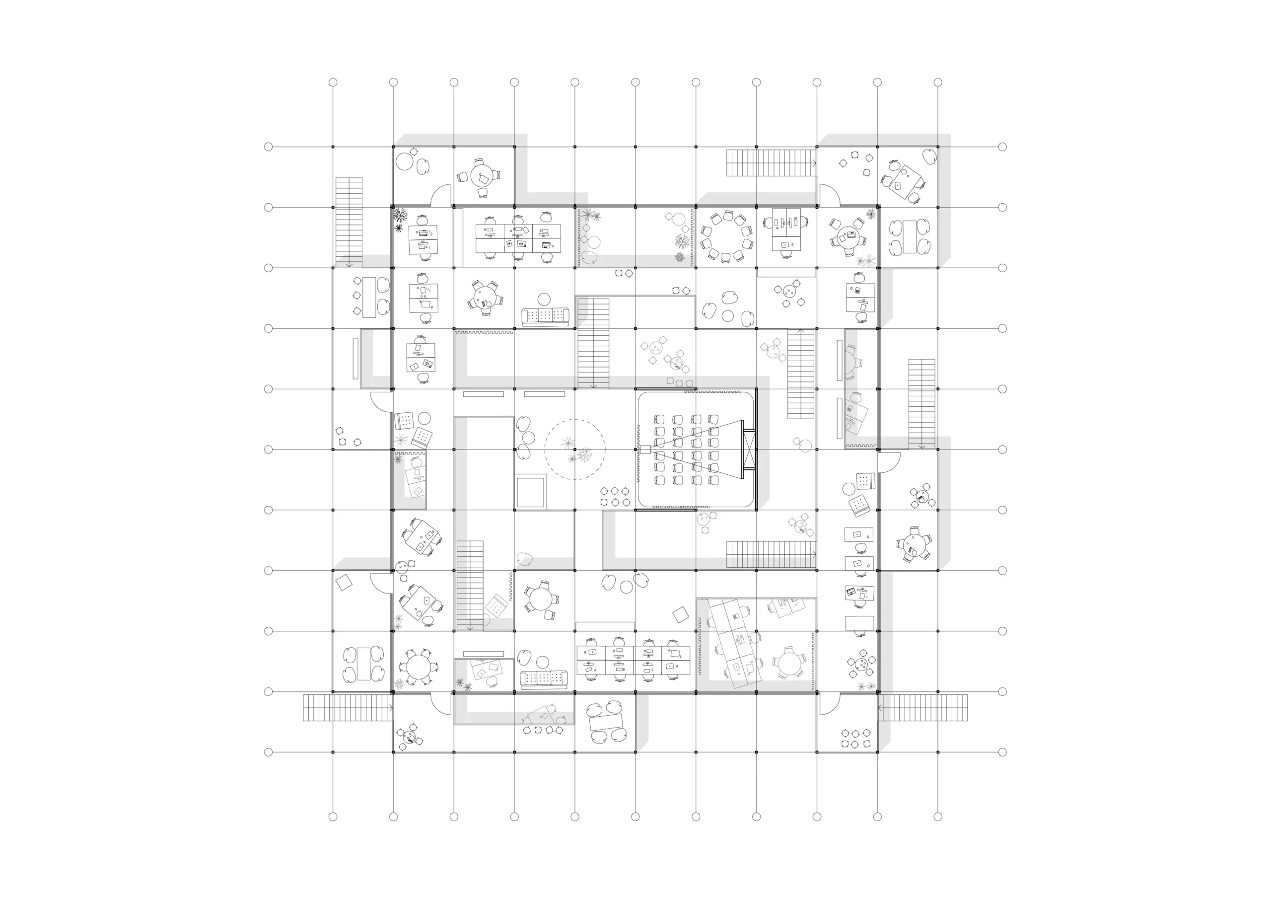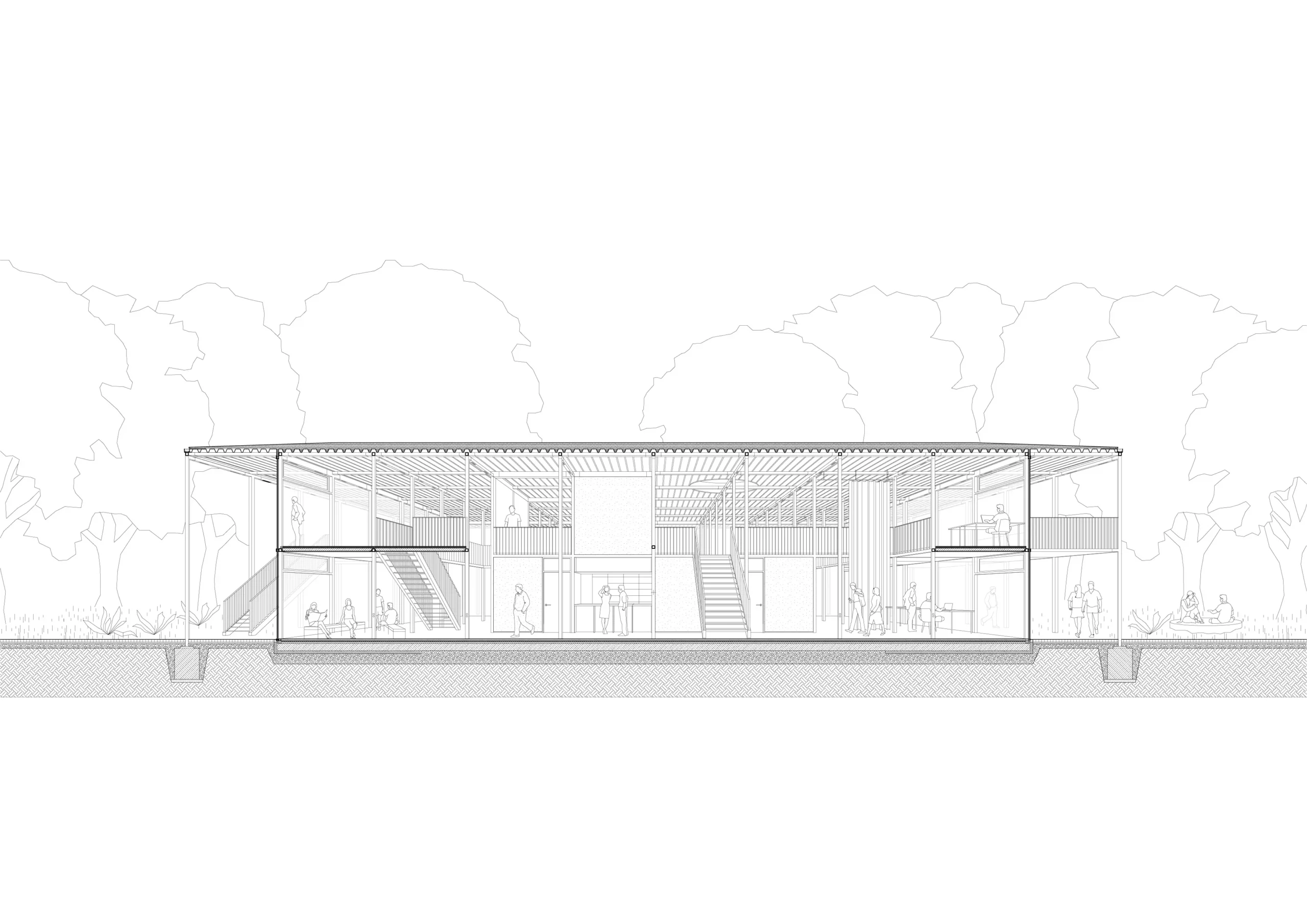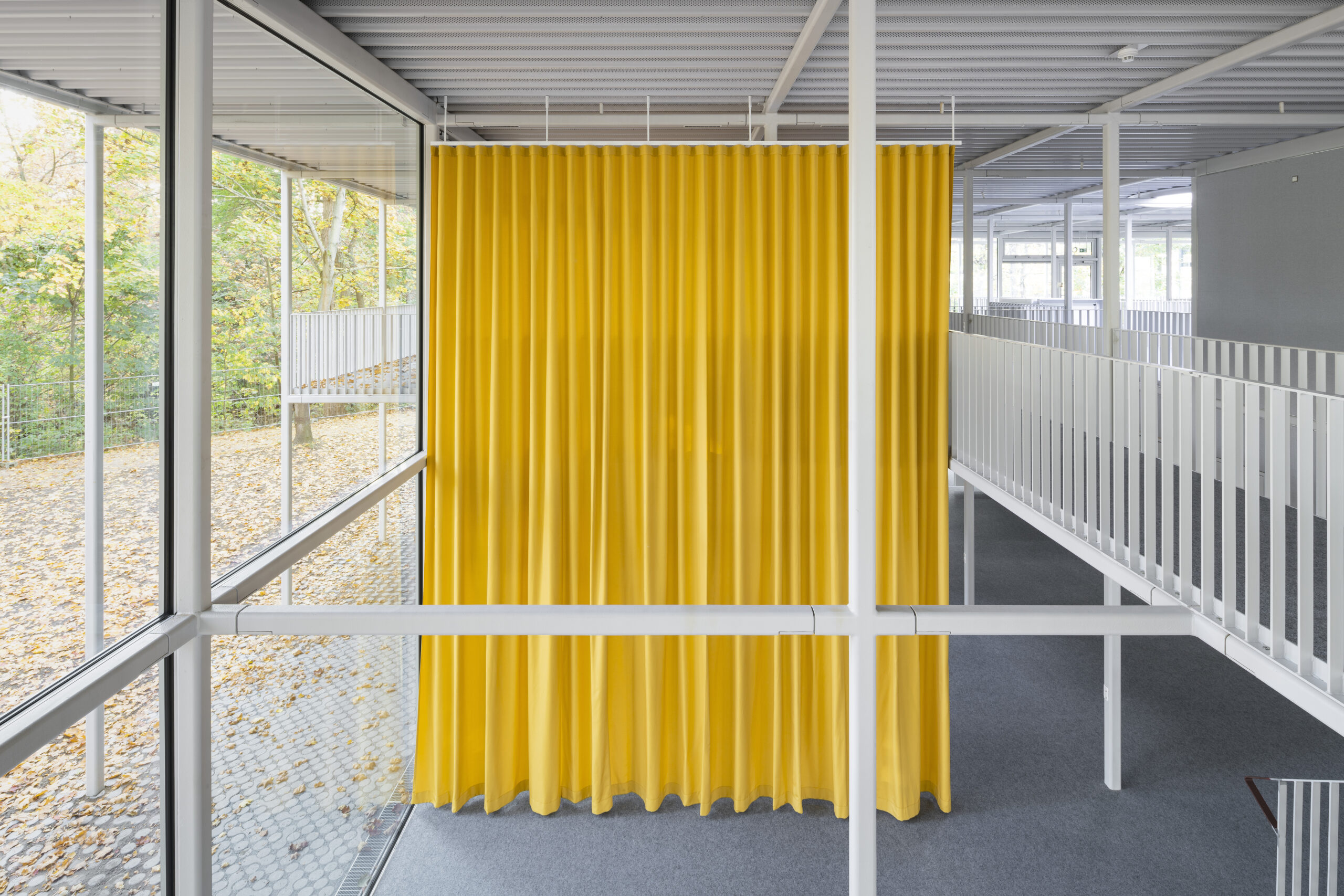 Paviljon obuhvata različite zone, od prostranih dvostruko visokih čistina koje podstiču na kreativno razmišljanje, do intimnih prostora gde studenti mogu da se osame i rade u miru. Ovaj pristup stvara fleksibilno i podsticajno okruženje koje se lako prilagođava različitim potrebama korisnika.